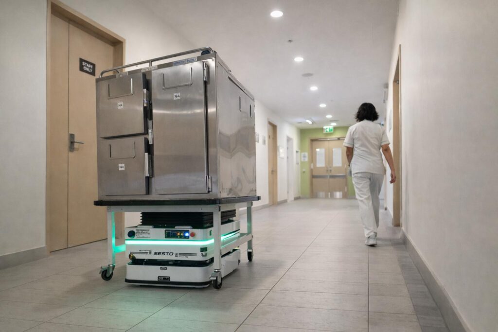 SESTO Robotics automated meal distribution across hospitals and care facilities by transforming repetitive trolley runs into seamless, contact-free deliveries.