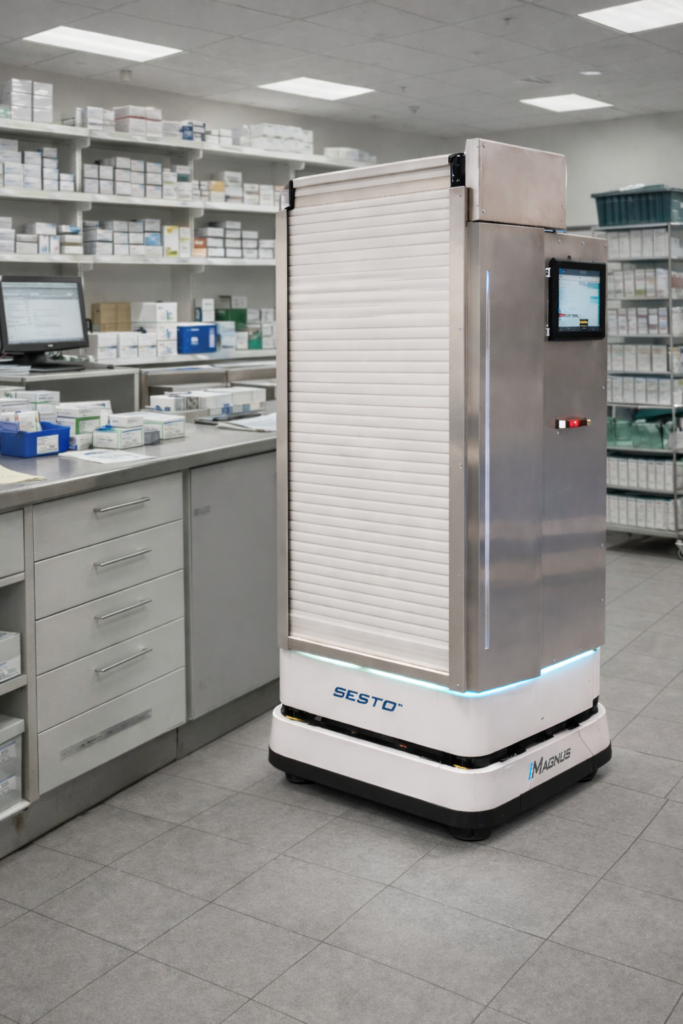 Powered by the Magnus AMR platform, SESTO’s Automated Pharmacy and Consumables Delivery System operates safely in sterile, high-traffic hospital environments, connecting critical zones without human intervention or workflow disruption.