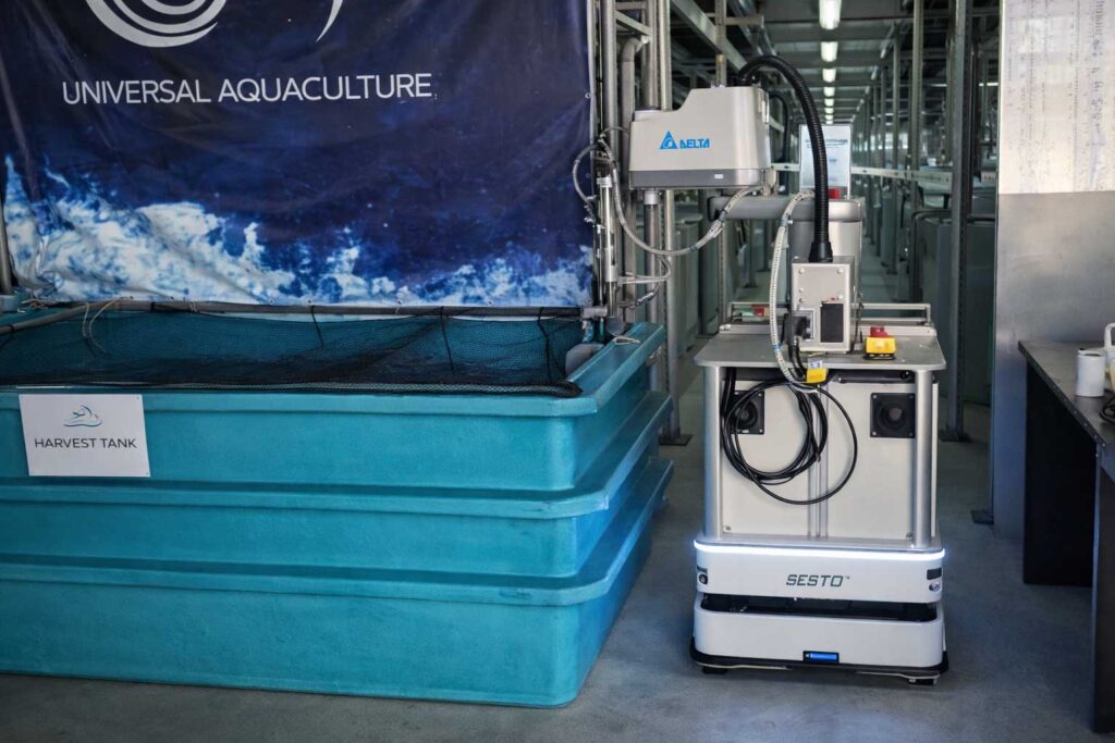 • Customized AMR deployment: One SESTO AMR equipped with specialized sampling tools automates pH, salinity, and temperature testing across multiple tanks.